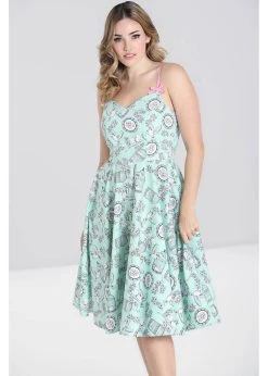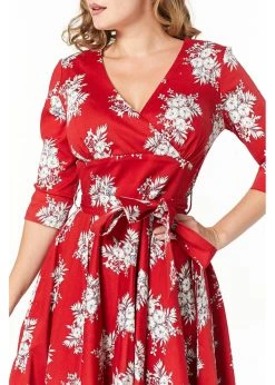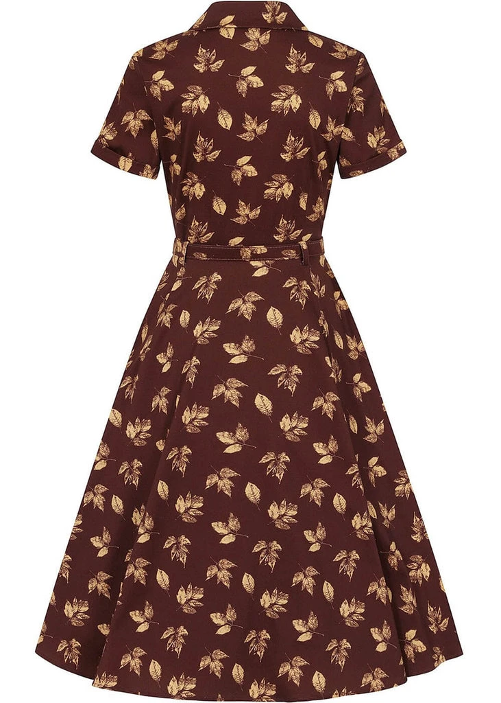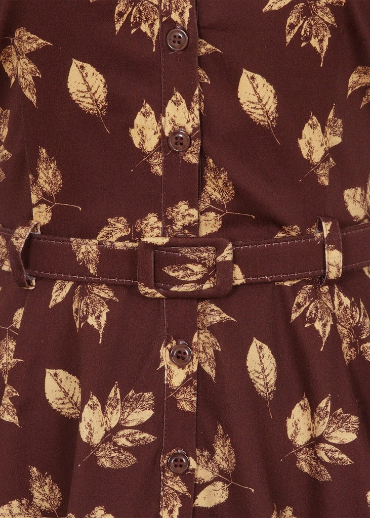 The stunning quality cotton-mix has a very slight stretch and feels like a dream to wear. She closes on the front with the buttons, creating a timeless shirt look. The waist is accentuated with the belt, and down from which she flares out into a full swing skirt which with a height of 1,70 reaches down over the knee. You can also gorgeously combine the skirt with one of our onze petticoats to make those flower dance. She even has little pockets!