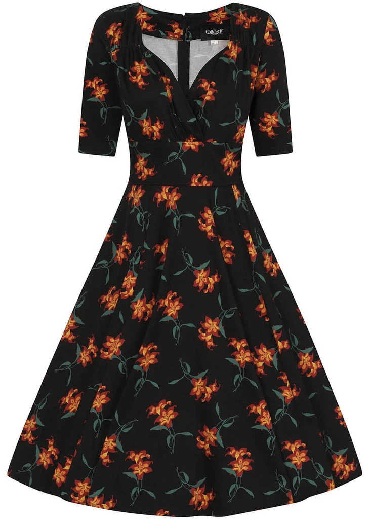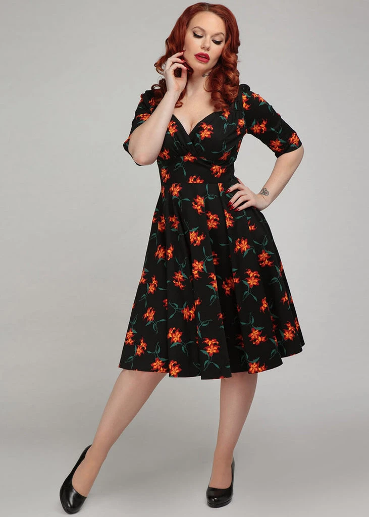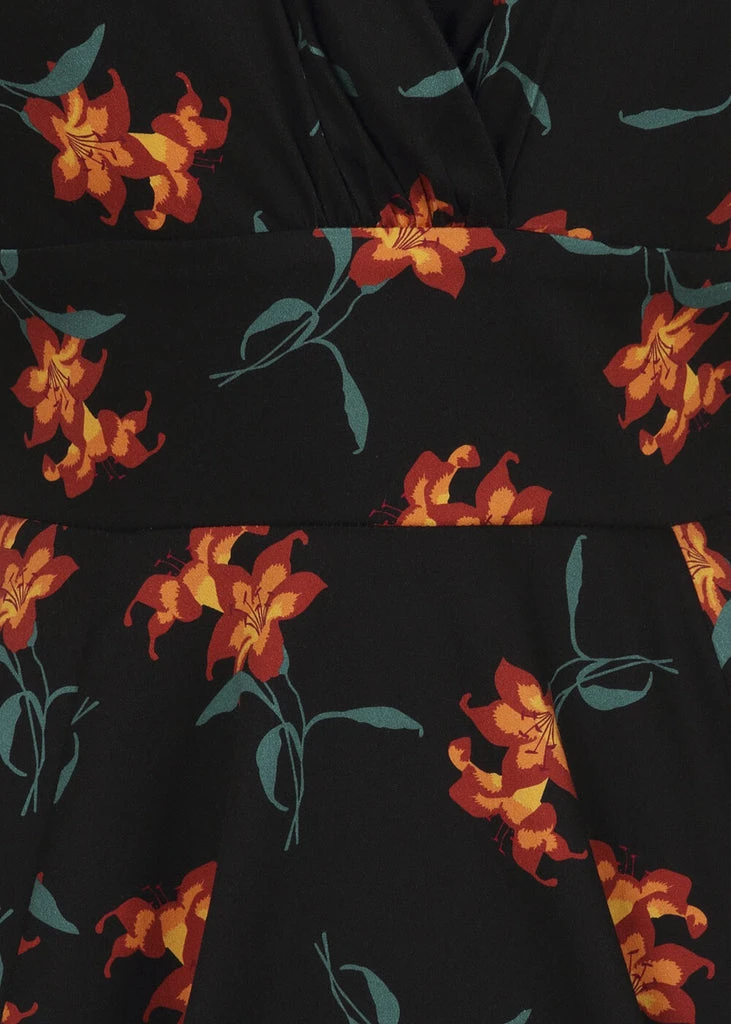Trixie has an enticing overlay on the chest and small gathers by the shoulders. She’s made of a fine cotton-mix with slight stretch. From the waist, she flares into a lovely skirt and is perfect to be worn with one of our petticoats to make the flowers bloom. She closes with a zipper in the back, and for a height of 1,70 m, she ends around the knees or just below.